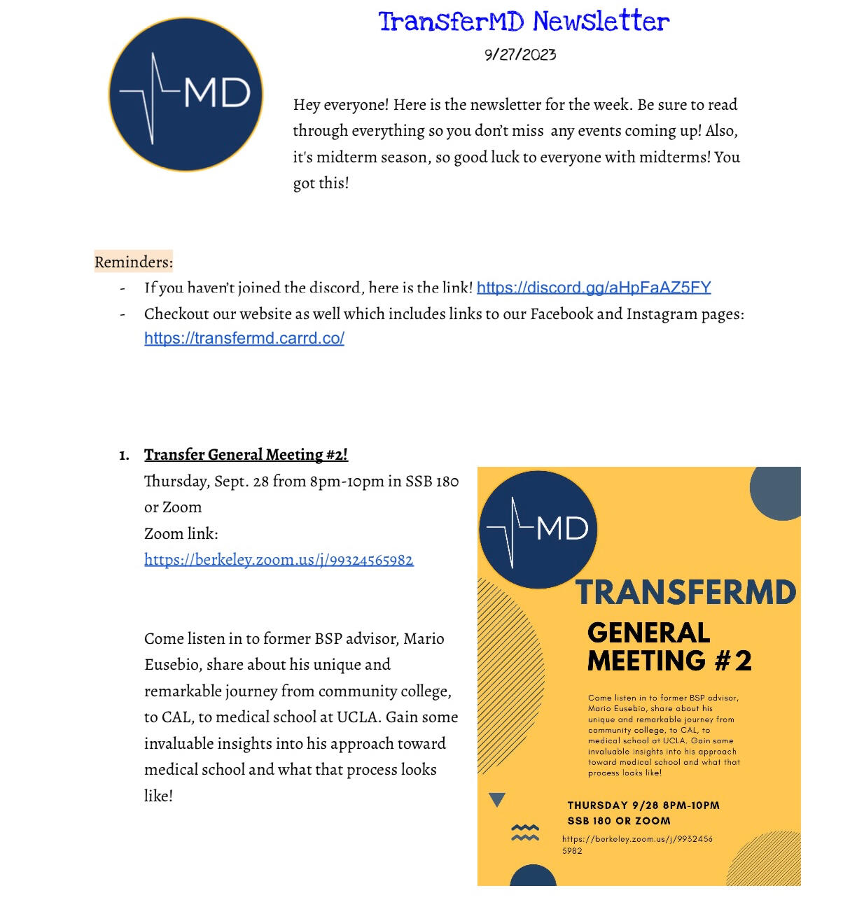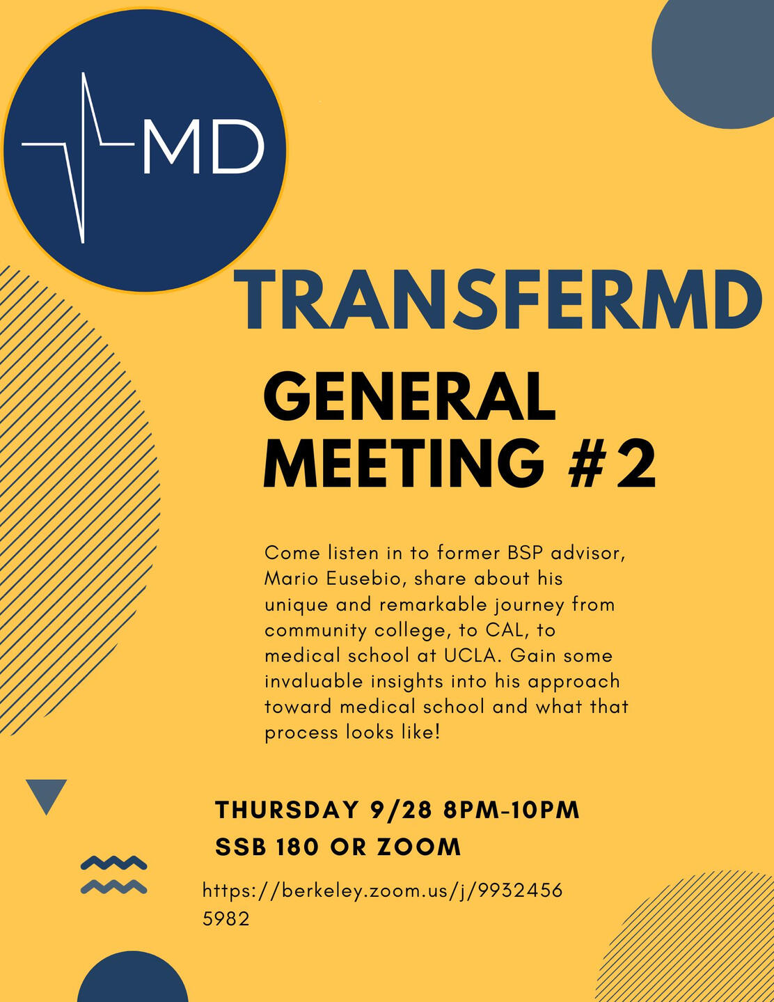 Come join us for our second general meeting! Guest speaker Mario Eusebio will be sharing his pre-med journey! In-person attendance is also preferred!Click the link below to attend via zoom: